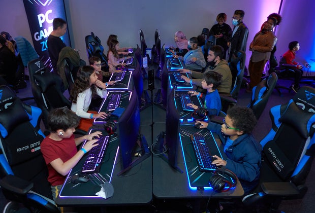 The family-friendly space houses more than 65 games on over 20 gaming stations. Photo courtesy of PaleyLand