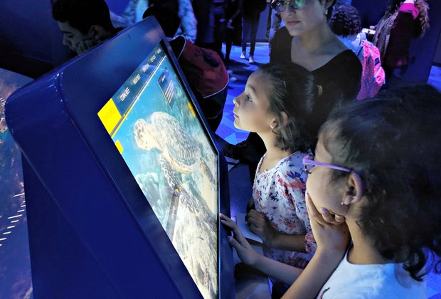 The show continues into the National Geographic Exploration Hall, where you can learn more about the sea creatures you've encountered and have a fun photo taken with an oceanic backdrop before heading into a huge learning center. Interactive screens and games provide an in-depth look at sea animals and their habitats. Visitors emerge from their ocean journey in the retail experience where they can peruse themed apparel, toys, games, books, and other souvenirs.