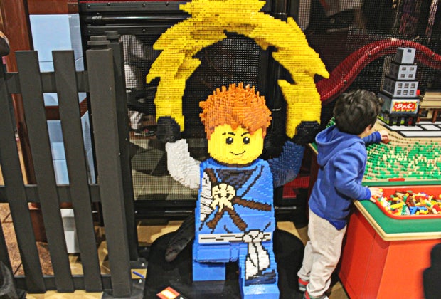 Surrounding the main play structure are various Ninjago-themed displays and characters, and areas to play with Legos. It took more than 110,000 Lego bricks (!) to create the three models of Sensei Wu, Jay, and Nya. You'll find it's a little less hectic here than in the indoor climber and maze, so kids who are easily overwhelmed by might be happier with these activities.
