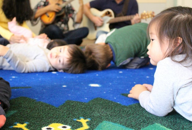 And feeling comfortable is a running theme here, meaning...you! "Getting our parents to understand that their voice is the most important voice to their child regardless of their own ability is such a powerful and important lesson," Owen explains. "You don’t need to be a trained singer with a fantastic tone for your child to think you’re a rock star!" Translation: Get really to sing and bop along in class.