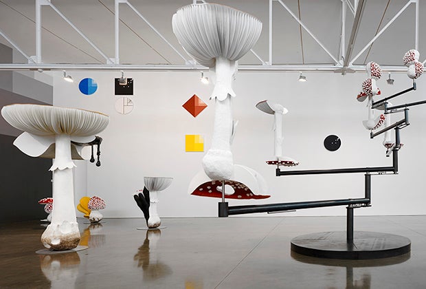 A giant mushroom, fish, and a giant cube for climbing make Carsten Holler's Reason a must-see. Photo courtesy of Gagosian Gallery