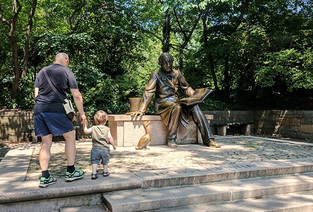 The Hans Christian Anderson talking statue in Central Park. Photo by Mommy Poppins