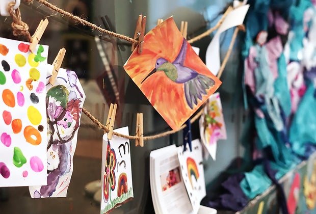 Upon entering and storing your coats and strollers, you'll flow through the WEE Arts Studio. Though meant for the 5-and-younger set, big siblings and older guests are always welcome, too. The bi-level space has a few mainstays: There are tables devoted to play dough and dot stamps plus a vat of flubber (with recipe always posted above!) for kids to dive into. Those who want a more physical experience can build with Magnatiles or big foam blocks. The upper level offers a long watercolor painting table, where colors, brushes, and paper are as plentiful as the creative inspiration. Another area offers space to layer (mostly) recycled materials into collages or 3D sculptures depending on the day. Those who want a more in-depth art-making experience can register for WEE Arts Classes, which take place when the museum is closed to the general public.