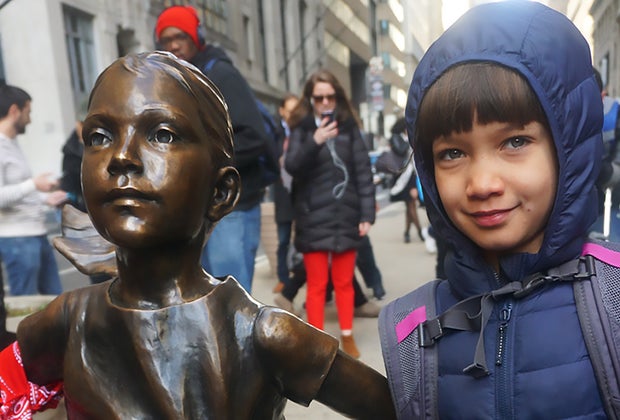 The statue, sculpted by artist Kristen Visbal and commissioned by State Street Global Advisors, made her debut on March 7, 2017, and locals and tourists alike flocked to the site to pose for photos next to her while mirroring her powerful, defiant stance. There were critics who called it "false feminism" and even some minor vandalism. Some, including the artist behind the bull, called for her removal altogether.