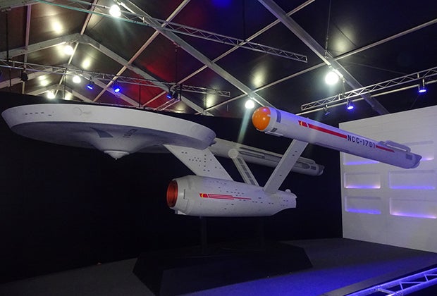 A replica of the original Enterprise is suspended from the roof. Photo by the author.