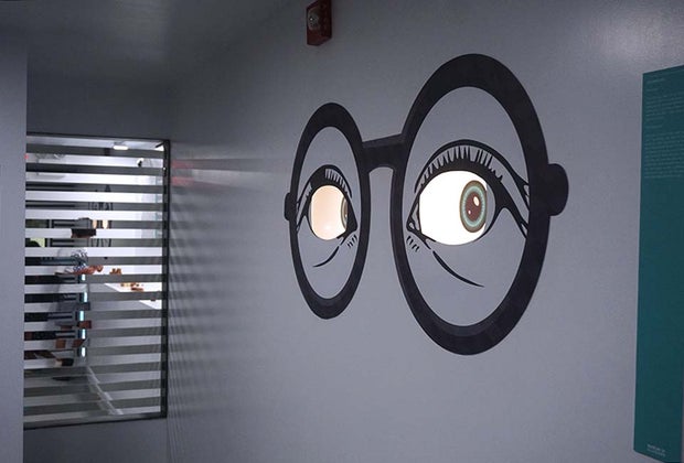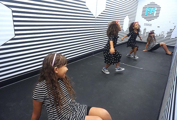 As we walked in, Gjoni pointed to a seemingly random collection of wood oddly arranged on the floor and asked my kids what they saw. A flag pole, my son said. Blocks, offered one of my daughters. The correct answer? Neither ... rather, a chair. Gjoni pointed to the photo sticker on the floor about 10 feet away and asked us to step back. Indeed, from that perspective, it looked like he was lounging on a very large chair. Minds blown, we were off to explore the other optical illusions in the space.