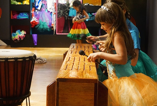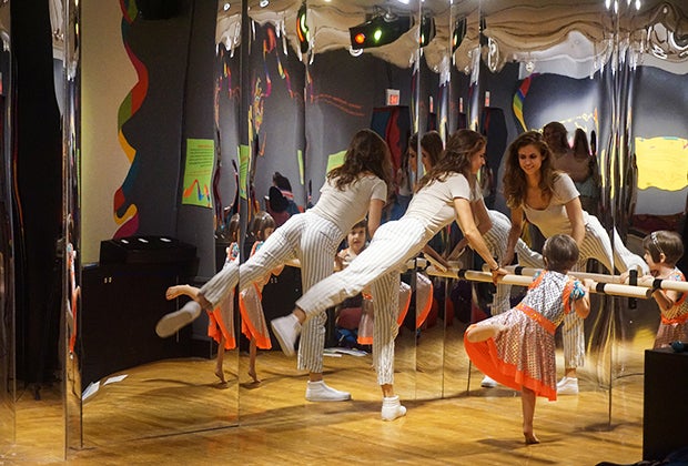 Once kids have found the inspiration to move, there is plenty of space to do so. One corner houses studio-like mirrors and ballet barres; another corner is overflowing with sequins, tulle, and costumes so kids can dress up and really play the part.