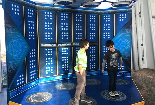 In another sci-fi movie staple, kids can receive a hologram message from Titan. As the exhibit explains, it’s actually a faux-hologram, because the real thing is so complex, but little ones delighted in the hovering projection of a spaceship.