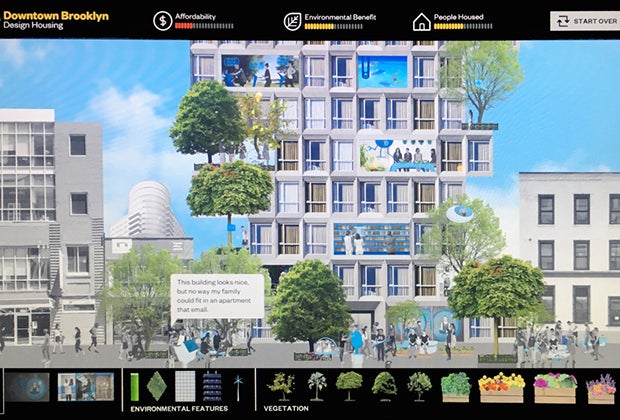 While my kids designed away, I took time to wander the large, open room of the Future City Lab and take in offerings like Living Together and Making a Living, which offered touch screens featuring the work of street photographer Joseph Michael Lopez, as well as stories from residents of different NYC neighborhoods. In the same room, I took in Mapping New York City: 2000–2050, a huge, slide-shaped installation, as well as Then & Now & Then, a film by Michael Goldberg, in which New Yorkers discuss their hopes, dreams, and impressions of city planning.