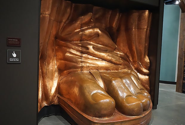 Touch the toes of Lady Liberty.