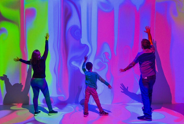 The immersive floor-to-ceiling color play area is a must-visit destination. The entire family can dance and create, here thanks to screens of digital, touchless “paint.”