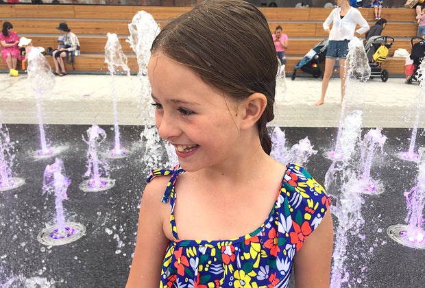 Check out the sprinklers at Domino Park. Photo by Rosalind Muggeridge