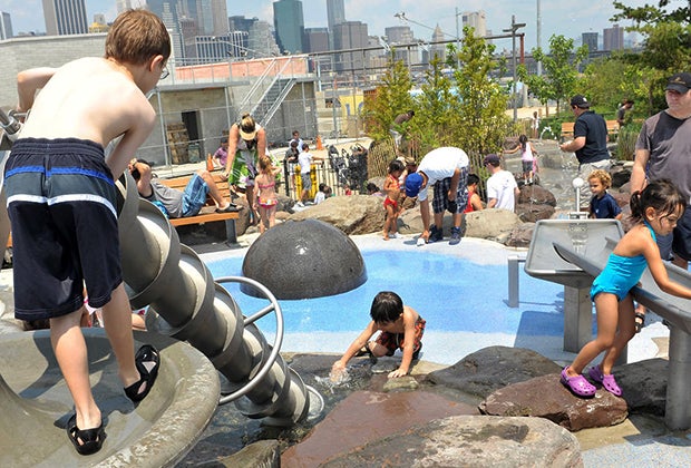 This recently-opened six-acre park on the Williamsburg waterfront has so many cool features, your kids will never want to leave. Water features here include sprays and mist to cool off the little ones, and nearby seating for caregivers. Done with water play? Head over to the slides and climbing equipment, inspired by the old Domino sugar refinery, for even more fun.