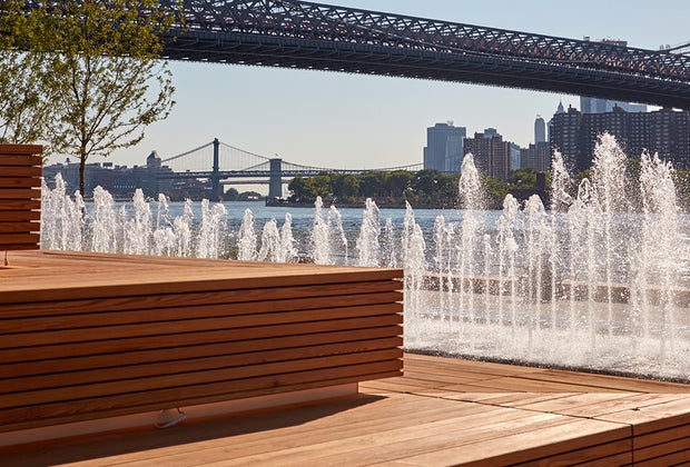 The expansive park stretches over a quarter mile along the Williamsburg Waterfront.