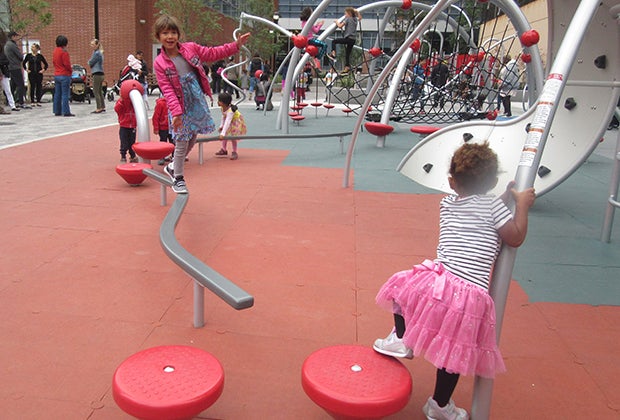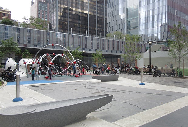 Built on top of what was once an outdoor pool, the playground spans a full block.