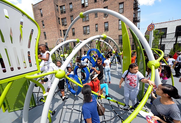 The Jackson Heights Junction Playground is filled with new equipment for all ages.