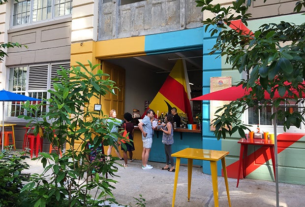 For a more kid-friendly menu, you can meander to one of the many indoor restaurants, or the Burger Joint by the live music stage in City Courtyard 1/2. The latter has plenty of outdoor activities as well, and of course live music during its concert series, which takes place on Wednesdays, Thursdays, and Saturdays throughout the summer. Family concerts hosted by The Rock and Roll Playhouse will take place on Wednesday evenings and Saturday afternoons. Rooftop Films will also bring its outdoor movies to the space on Saturday nights. Check out the full event lineup on its calendar.