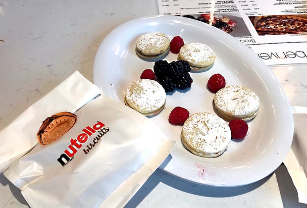 Unsurprisingly, everything on the menu is drizzled, dunked in, or stuffed with the trademark chocolate-hazelnut spread. Selections range from the classic (crepes, waffles, or pancakes with your choice of fruit and toppings), to the trendy (toast spread with ricotta and Nutella), the healthy (overnight oats and chia seed pudding laced with Nutella), and the completely over-the-top (my choice: Nutella creme brulee). The pastry case overflows with Nutella-stuffed pastries, cookies, and more, too.