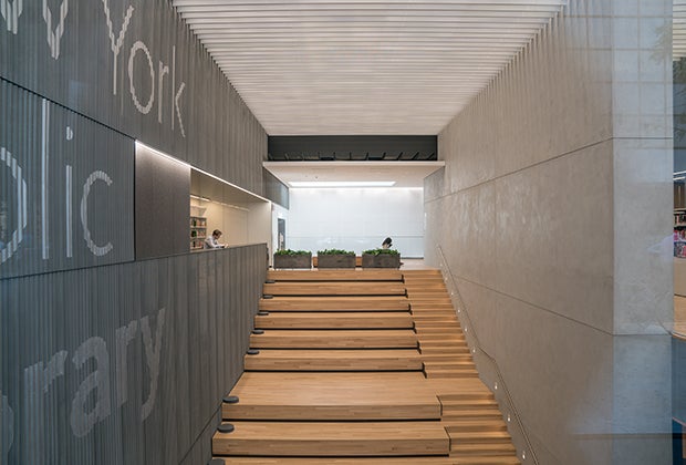 The 53rd Street Library was designed by award winning architects TEN Arquitectos, and at around 28,000 square feet, it's among the largest in the New York Public Library system, though smaller than the old space as some activists have pointed out. The new space features an amphitheater and an auditorium with TV screens for programs and events, high ceilings, and modern décor. Though two of its three floors are below street level, the library feels bright and spacious, thanks in part to its glassy facade, and offers an impressive lineup of free events for kids and teens (conveniently displayed on a monitor near the entrance).
