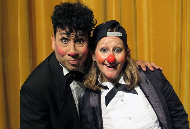 The couple that clowns together, stays together! Silly spouses the Remarkable Renaldo and Little Lou bring their act to Symphony Space, an hour-long cavalcade of slapstick, tricks, magic, juggling, and other fine foolery. Renaldo has quite the resume, including gigs with the Big Apple Circus and SeaWorld, but I remember him best as my daughter's very first circus teacher when she was just 4 years old. He taught her how to hula hoop!