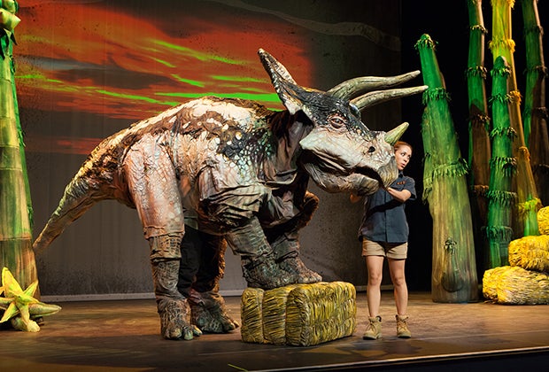 Top photo: Watch dinos take to the stage in Erth's Dinosaur Zoo Live at the Skirball Center. Photo courtesy of the venue.
