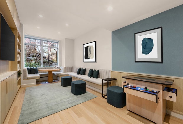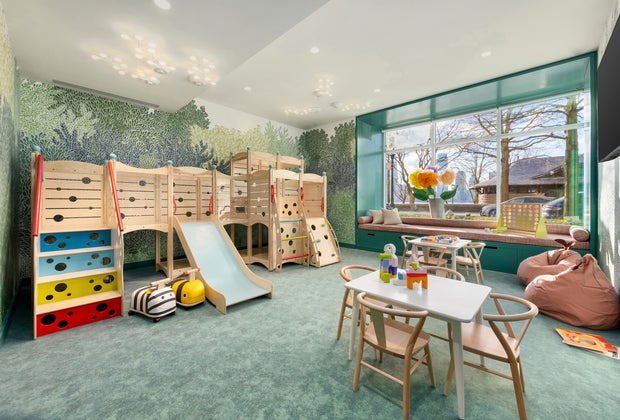 Families can relax on the beautifully-landscaped roof deck with stunning views of the Hudson River, entertain friends in the resident’s lounge, and even play video games or enjoy a movie together in the media room. The Solaire’s youngest residents can also let loose in a light-filled, nature-themed playroom that celebrates the building’s proximity to the park.