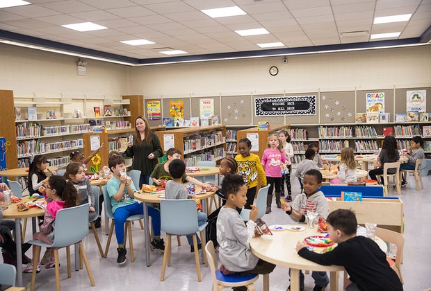 After renovations, Marcy Library has appeal that goes beyond its collection of books. The library reopened in February of 2018 and now boasts brand-new computers, seating areas, and an interactive activity wall in the children's section—aims to encourage creative play, an important pre-reading skill for babies and toddlers. It also offers songs and activities geared specifically toward preschoolers, as well as crafting events for older kids. It even has a session that appeals to the littlest New Yorkers, called "Babies and Books," which encourages early literacy, social skills, and motor skills through play. Check the calendar of events for more details!