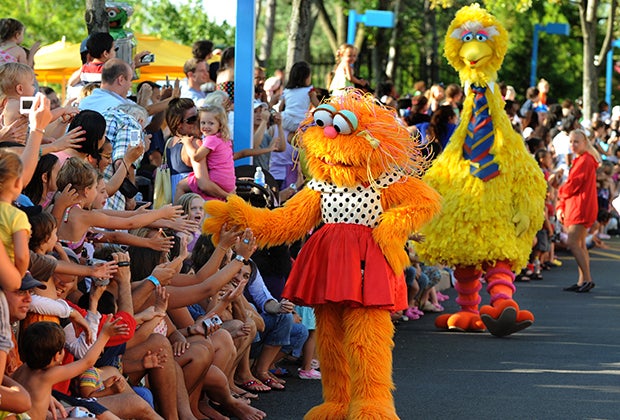 Sesame Street characters walk the parade route, or ride on floats almost daily in the summer months. Photo by R. Kennedy for Visit Philadelphia.