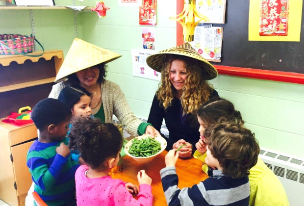 The LWFC employs a whole language approach, with courses that utilize music, vocabulary-building songs, visual aids and active games to engage children. Classes for children 6 months to 9 years are available in Chinese, French, Italian, and Spanish (varies by location). Choose from baby/toddler groups, after-school lessons, language immersion preschool, or summer day camp.