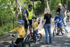 Classes for kids use the "balance first" method. I took my son to a lesson and it really works! After they have that down, they learn to how to start, stop and steer, and how to adjust their helmets. All cyclists must wear helmets and be able to rest their feet flat on the ground while sitting on their bicycle seats. Parents should pump up the tires until they're rock hard and remove training wheels prior to the class. (If you can't figure out how to do this, instructors can help you on site.) The program works best for children ages 5 and up. You must register in advance at Bike New York's website. There are multiple sessions throughout May in all five boroughs. Click here for a full schedule.