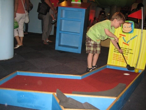 This three-hole setup is a big draw, and allows kids to learn about rudimentary physics while getting their game on. One hole has lots of tubes, pipes and foam banks to experiment with; another has a hand-cranked turntable; and the third has a small gap to hit the ball over. Be warned: During our visit, this area was quite chaotic. There weren't enough balls or clubs to go around, and lots of antsy kids didn't want to wait their turn.