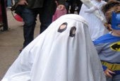 The ghost is a great last minute costume, but, it isn’t as easy as we were all led to believe in those Charlie Brown cartoons. The sheet needs to be secured on top of your child’s head or the whole thing will move causing lots of tripping and falling when they can’t see out of the eyeholes. If you want to try out a ghost anyway, sew or glue the sheet into a top hat or baseball cap. My son wanted none of that so I used a white cord and kind of tied it around his forehead, hippy style, to keep the sheet in place, which didn’t work very well. Needless to say he only wore the ghost costume for about ten minutes.