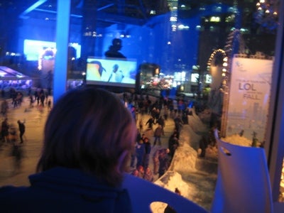 Warmest: During the movie, enjoy dinner or drinks at the rink-side restaurant Celsius. The glass-walled second floor offers a perfect viewing location, or sit under the heat lamps at the indoor-outdoor lounge on the first floor. You'll still want to dress warmly: The restaurant's tented ceiling and the windy weather makes it a little chilly inside, even cold, once the sun sets. There's a children’s menu as well as plenty of regular items that should appeal to all, like the chicken pot pie or ravioli.