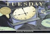 What a beautiful work of surrealistic mysteriousness. At around 8PM, when the fog rolls in, David Wiesner takes us on an amazing airborne adventure. We witness a fleet of floating amphibians as they rise from a water lily-strewn lake. They cruise on magic lily pads to a town where people really should keep their windows closed and take in their laundry at night.