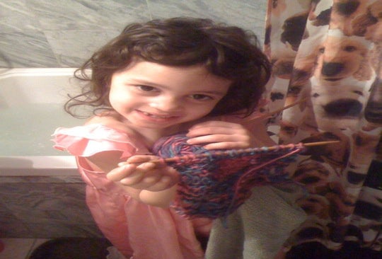 And if you still want more, we asked our Facebook fans, i.e. your neighbors, how they plan to spend their time indoors during the storm. So far, top picks include puzzles (run out and buy a 1,000-piece one, stat!) and throwing a "hurricane party with bubbles to ease the minds of our little ones." We just love that idea. As for us, I'm thinking of writing song parodies based on Irene. "Come on Irene" has a nice ring to it. My daughter, meanwhile, is planning a massive knitting project (that's her above).