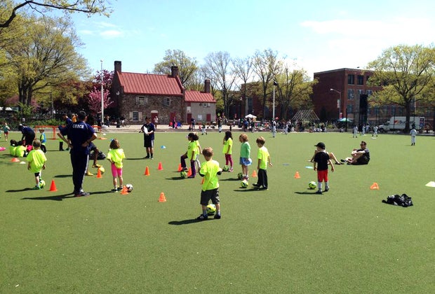 A huge selling point is the expansive playground’s proximity to the historic Old Stone House. This site of the 1776 Battle of Brooklyn is now a colonial museum, offering history lessons and community events, like theater and live music.