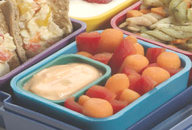 We home school but we are always on the go taking lunch and snacks with us. The kids' occassional and much-enjoyed indulgence, perfect for school lunches as a dessert or side dish, is Mash Ups (organic berry flavored apple sauce in a squeeze tube). Larabars (and Jocolat bars) make really healthy portable desserts or snacks. My kids are also big fans of garlicky tzatziki (Greek Yogurt Dip) which is great for dipping carrots, celery, cucumber sticks, chicken strips, and more and won't "turn" if it's not refrigerated for a few hours. —Marcy