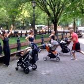 Being a first-timer I wasn't sure what to bring or expect, but I tried to keep my jogging stroller as light as possible hoping that would help. Seven moms met for the class in Central Park. All but two had infants and impressively everyone seemed raring to go. Our instructor arrived with his own set of wheels, a bike, and led us through a one-hour workout. We jogged or walked between four different stations where we would stop for a series of exercises ranging from lunges to push-ups on park benches. At each stop we had the option to get our kids out of the stroller. I was relieved when my son seemed entertained to play with sidewalk chalk or bend and touch his toes along with the group. The instructor gave us a two minute warning before leaving each location, so we could gather up the kids and take care of any baby matters. We ended with a cool down and stretch. Two days later I really felt it in my legs.
