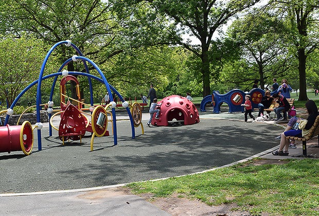 On any given summer day, you’ll find moms with toddler in tow, pre-teens chatting on the swings, and campers from the nearby JCC all having a blast at Stephen R. Gregg Park. This huge playground boasts six different play structures AND a pretty neat water play area (featuring a purple dragon that shoots water!), so it never really feels crowded. Wee ones will love the pretend school bus and police car, and older kids looking for excitement will head straight toward the sky-high tunnel, twisting slides, and swaying bridges. And if the playground isn’t enough entertainment, bring the bike or stroller and exercise along one of the many shaded paths or sports fields that overlook the Newark Bay.