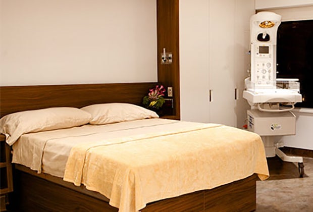 A full-size bed is a perk at the New York-Presbyterian birth center.