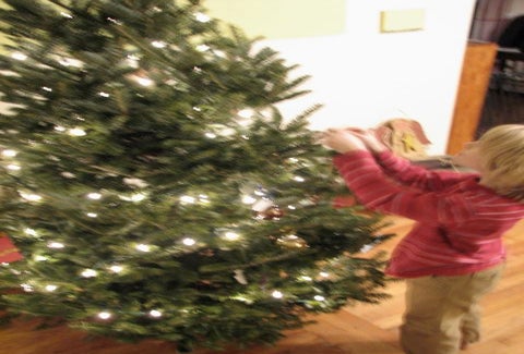 There's a lot of confusion over the issue of whether an artificial tree is more green than a natural, cut tree. At first I thought perhaps an artificial tree was the way to go, but on further research I feel convinced that a cut tree is the greener option. As discussed on Treehugger, an artificial tree is made of PVC, which is not recyclable and made of petroleum. Also, artificial trees don't last forever. They start to look bad after a couple of years, so, in fact, artificial trees can end up being much more wasteful in the end.