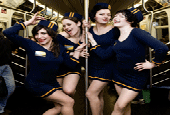The MTA Doomsday Budget includes a fare hike bringing a single ride to $2.50, elimination of the W and Z lines, plus other major reductions of service. Perhaps in protest, a group of sassy New Yorkers have taken to the rails as the MTA Service Specialists. Dressed as airline stewardesses, the group is traveling the NYC subway system and offering passengers the "service they deserve" and believe should come along with the new fare hike. If you luck upon them you may get treated to snacks from their rolling cart, help with your stroller, or maybe just a friendly smile. Shockingly, the MTA has asked them to not use their logo and website "design".