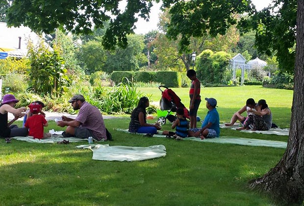 Feel free to bring along your own blanket and basket of treats as the grounds of Snug Harbor are happy to have you enjoy your own family picnic. There are also tables. Just no grilling.