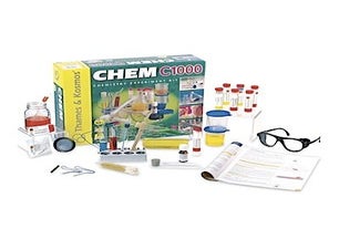The Chem C1000 - Chemistry Experiment Kit was my absolute favorite set from our whole Science Week Science Kit Review-a-thon. It doesn't look like a barrel of laughs, there are no cartoons on the box, none of your favorite characters, but this kit will have you and your kids giggling like mad scientists as you follow 75 experiments to create magical and sometimes surprising results. Chem C1000 is a real classic chemistry set. This is not a kiddie toy chem set. It's got real glass test tubes and beakers. Cool! And as I mentioned in our Science Kits for Preschoolers post, I love that the Thames and Kosmos kits don't just tell kids how to follow the experiment, but explain the science behind it and why it's important. $80 from Amazon