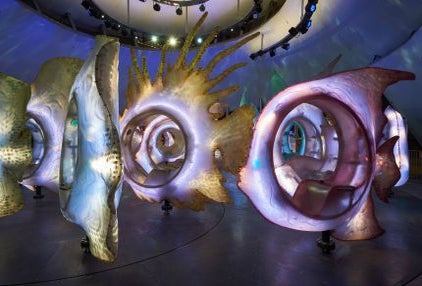 An August GoList pick: The Battery's aquatic-themed ride opens this weekend and it's a stunner, featuring 30 iridescent fish in an enormous, chambered pavilion reminiscent of a nautilus shell. Riders step into (not on) the fish, and instead of going round and round, you bob and glide throughout the space for a trippy, virtual underwater experience. Expect long lines!