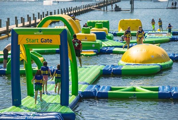 Beyond jetskis and wakeboards, Orlando Watersports Complex offers an amazing inflatable water park. Photo courtesy OWC