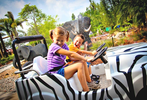Jump in a jeep and steer through a safari of Lego animals.