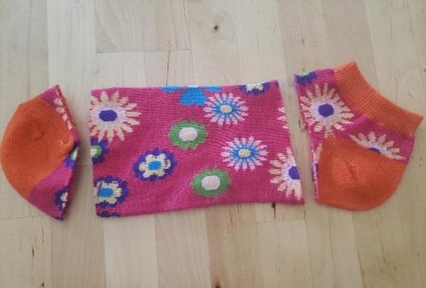 It's easy to transform a cute single sock you have laying around into a face mask. Photo courtesy of the Oakland Library