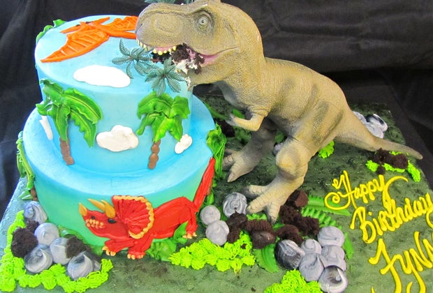 It's not a dino, but rather a lifelike cake. Photo courtesy of Clay's Bakery