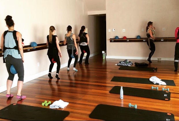 Moms get fit during the BYO Baby Barre class at Y2BFit. Photo courtesy of Y2BFit